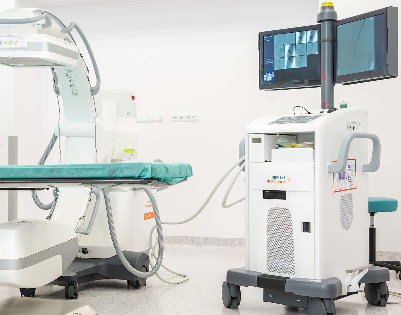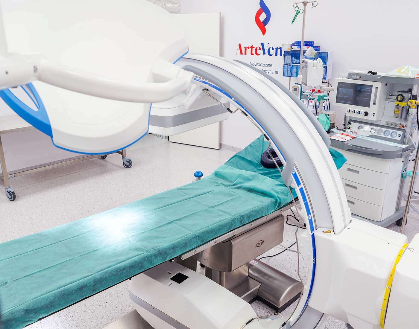 Sale wyposażone są w zaawansowany sprzęt, w tym mobilne ramię C (RTG), USG dopplerowskie oraz specjalistyczne narzędzia do chirurgii naczyniowej. Dbamy o bezpieczeństwo pacjentów, ale też komfort pracy chirurgów.
